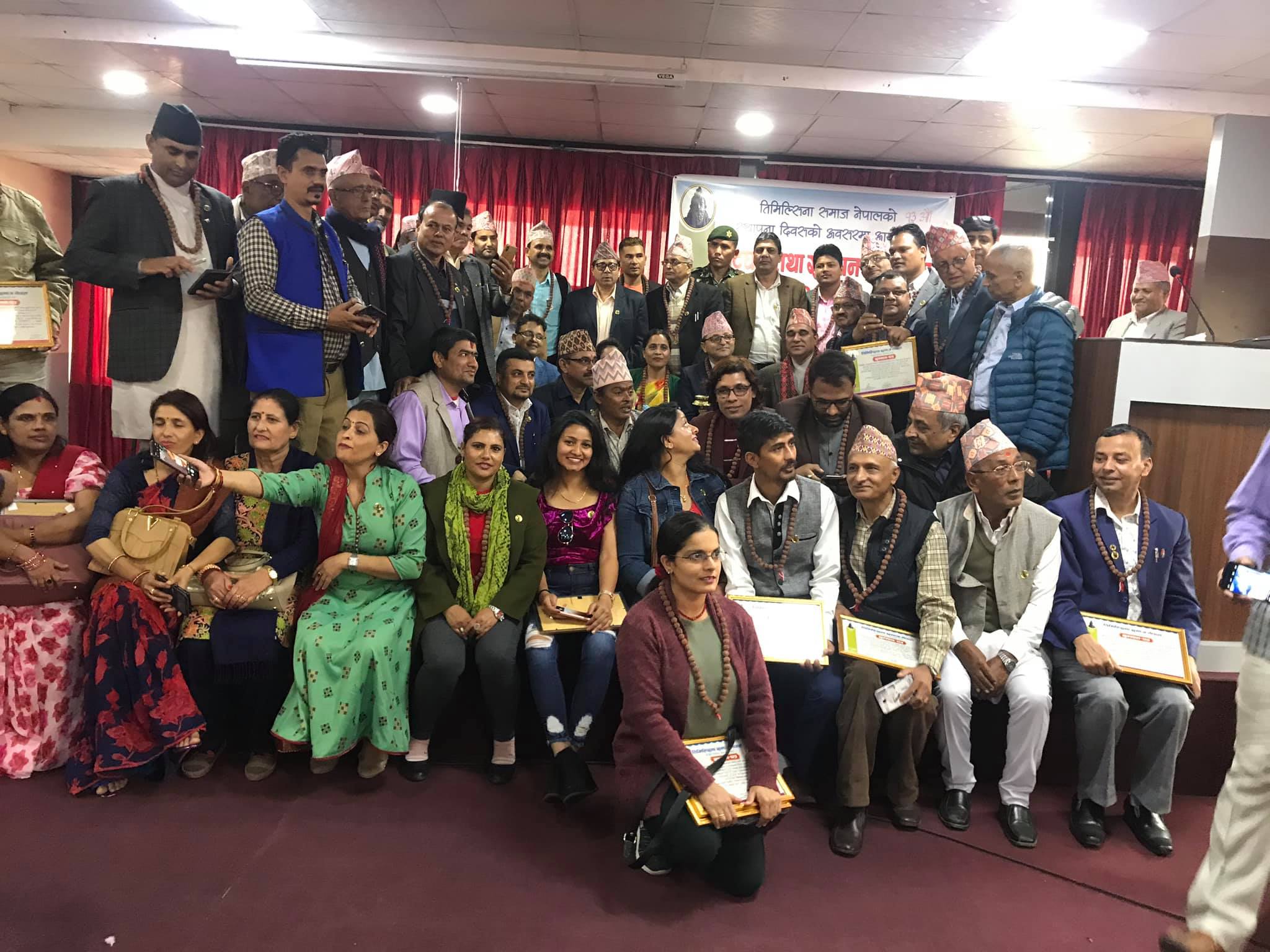 सम्मानित सबैलाई राष्ट्रियसभाका अध्यक्ष श्री तिमिल्सिनाले रुद्राक्षमाला तथा सम्मानपत्र द्वारा सम्मान गर्नुभएकाे थियो । कार्यक्रममा राष्ट्रिय खेलकुद परिषदका उपाध्यक्ष पिताम्बर तिमिल्सिना, प्रा.डा. पार्थिवेश्वर तिमिल्सिना, पूर्वराजा ज्ञानेन्द्र शाहका स्वकीय सचिब सागर तिमिल्सिना, समाजका संरक्षक डा. रामकृष्ण तिमिल्सिना, ज्योतिष पण्डित बृङ्घमराज तिमिल्सिना लगायतले सम्वोधन गर्नुभएकाे थियो ।